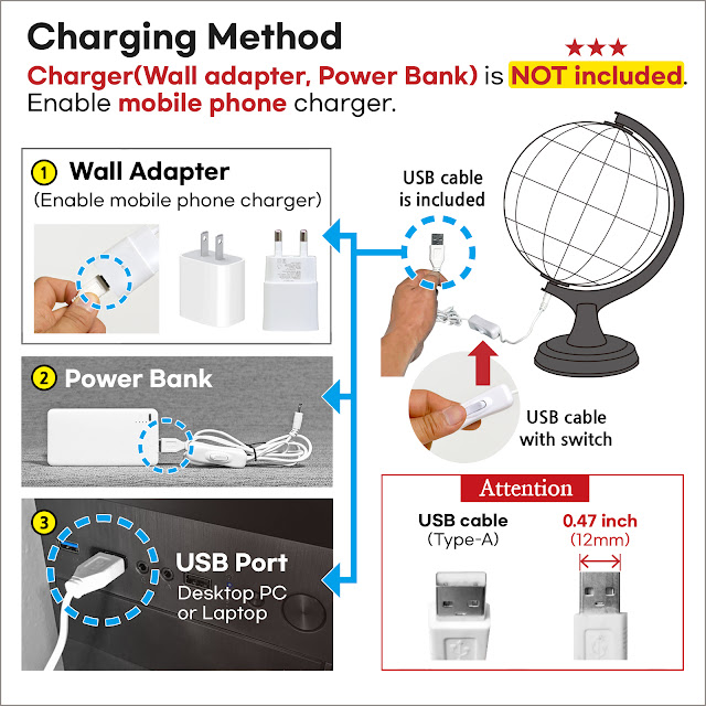 * Illuminated : Yes (LED Light Blub, USB cable (Type-A) is included)
